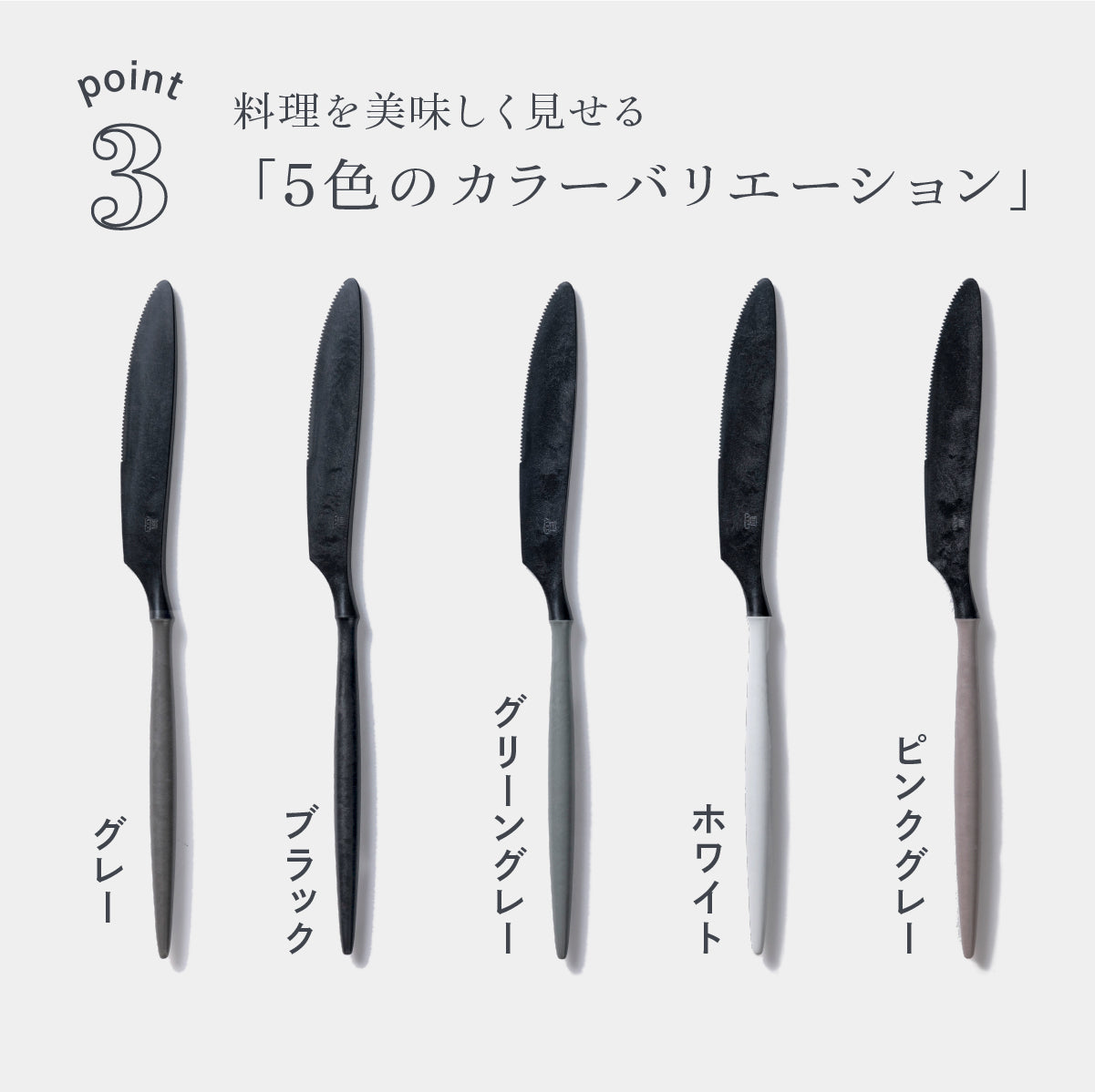 - カトラリーは柄の部分と先端のつなぎ目が構造上、弱い部分になっており力がかかって破損してしまう場合があります。ご使用の際は、つなぎ目部分に力をかけすぎないようご注意ください。