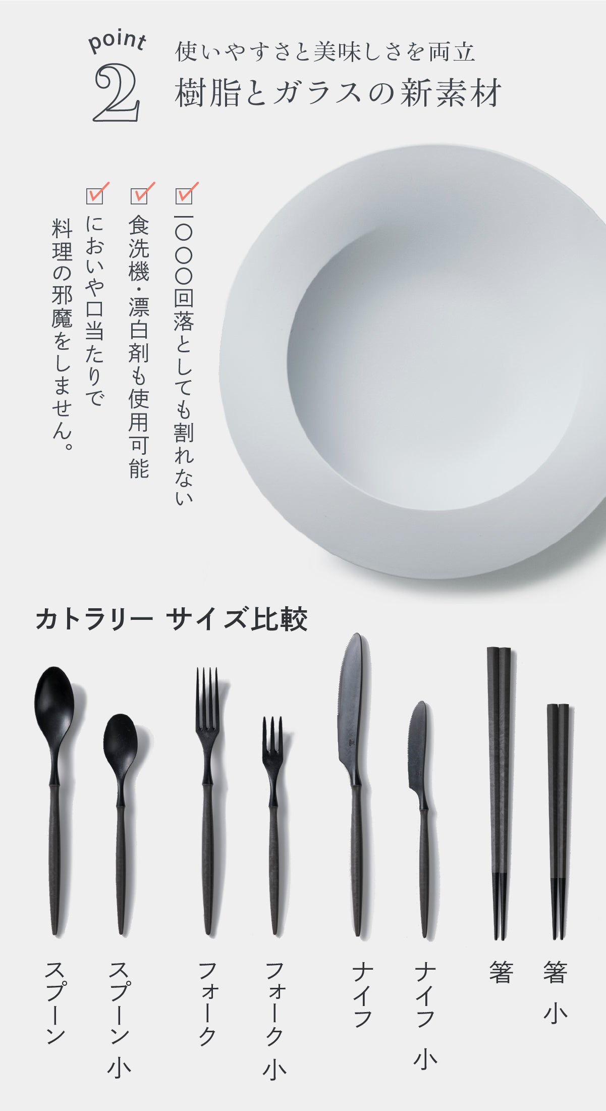 - 永くご使用いただくうえで、形や質感が変化する恐れがあるという観点から、電子レンジは使用不可となっております。